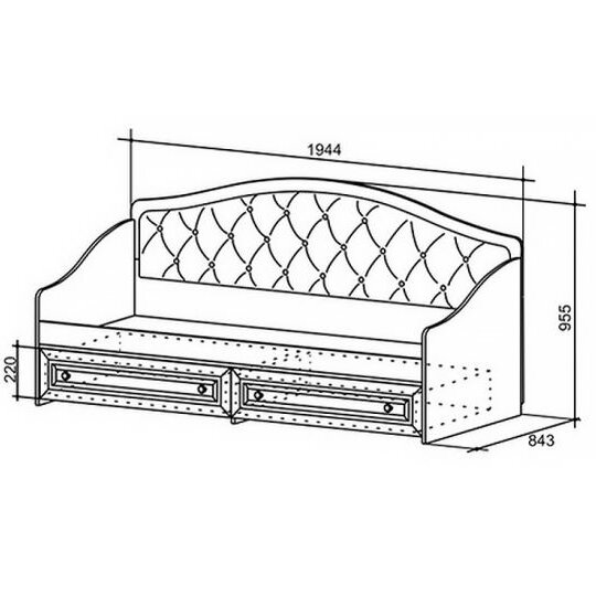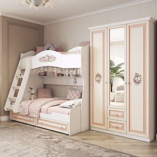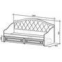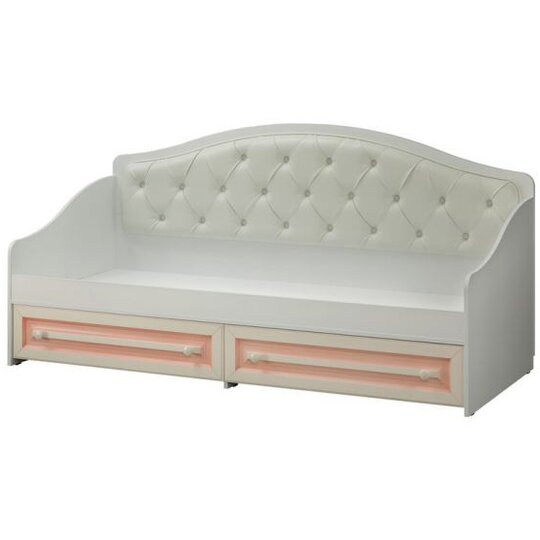 Кровать Алиса 0,8 - удобная модель для комнаты девочки, выполненная в традиционной классической стилистике. Мягкая спинка софы добавляет комфорта и оберегает ребенка от соприкосновения со стеной. Фасады двух выдвижных ящиков для постельного белья декорированы фрезеровкой и розовой патиной, а также снабжены круглыми керамическими ручками. Основной тон модели - нежно-бежевый оттенок.