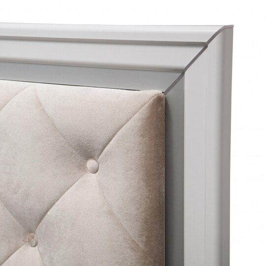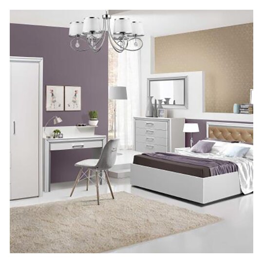 Спальня Беатрис это высококачественный набор спальной мебели. Мебель выполнена в ярком белом цвете глянец с серебром и имеет стильный дизайн. В состав гарнитура могут входить шкаф для одежды, комфортабельная кровать, тумбочки и комод с зеркалом.