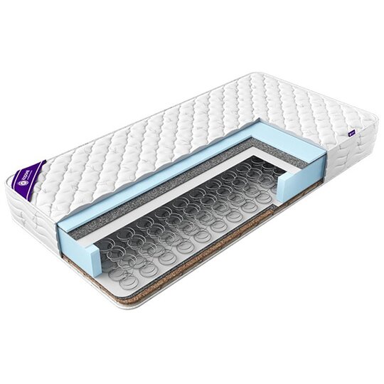Недорогой матрас на основе пружинного блока «Bonnel» с разной жесткостью сторон. Одна сторона с натуральной кокосовой койрой и термопрессованным войлоком обеспечивает надежную поддержку позвоночника и обладает высокой жесткостью. Вторая сторона с эластичным пенополиуретаном обладает средней жесткостью и будет более комфортной для сна и отдыха.