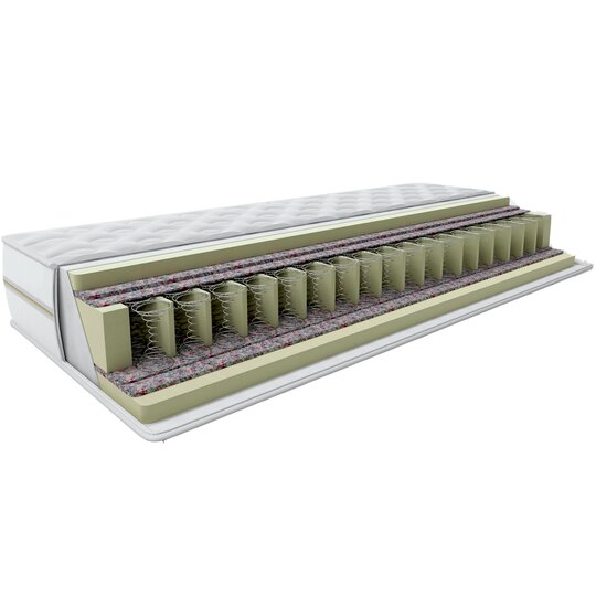 • Наполнение: gенополиуретан 4 см, термовойлок м, термовойлок ж, ПБ (Bonnel) усиленный, еврокаркас по периметру, термовойлок ж, термовойлок м, пенополиуретан 4 см.;