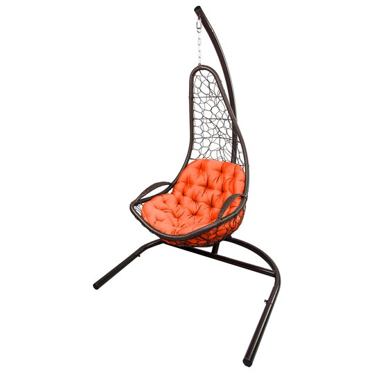 Стильное подвесное кресло для дома и дачи. Каркас изготовлен из искусственного ротанга с металлической основой, стойка металлическая. В комплекте - мягкие подушки из водоотталкивающей ткани. Не требует особого ухода.