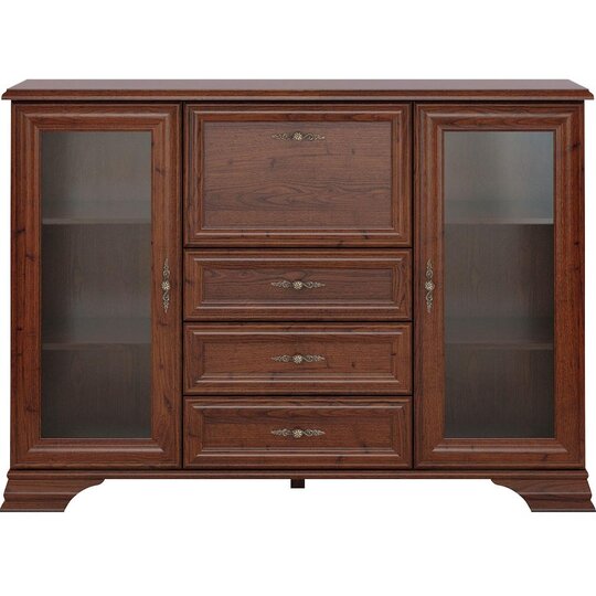 Тумба-бар серии Kentaki BRW – стильная мебель, выполненная в классическом стиле, которая предназначается для функционального обустройства гостиной.  Изделие имеет лаконичный, универсальный дизайн, поэтому может гармонично вписаться в любой интерьер, став его изюминкой, привлекающей к себе внимание.