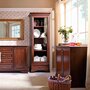 Особенности тумбы-бара. По бокам – два застекленных отделения с прозрачными дверцами и стеклянными полками внутри. Верхняя часть центрального отделения отведена под бар: нишу, закрывающуюся откидной дверцей. Под баром – три вместительных выдвижных ящика.