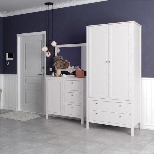 Шкаф Helga BRW выполнен в лучших традициях скандинавского стиля – лаконичный дизайн, элегантный белый цвет, безупречная функциональность. Органично вписывается в пространство гостиной, спальни, прихожей.