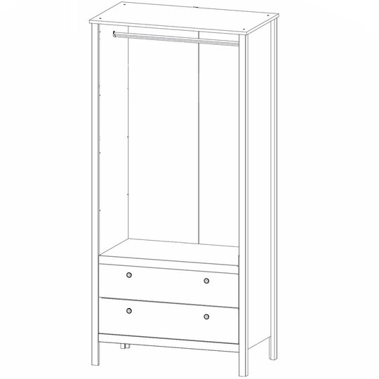 Особенности шкафа. Вместительная верхняя часть с перекладиной для удобного вывешивания одежды. 2 нижних выдвижных ящика для хранения постельного белья, бытовых мелочей. Устойчивая конструкция на ножках. Практичная стильная фурнитура и ничего лишнего.