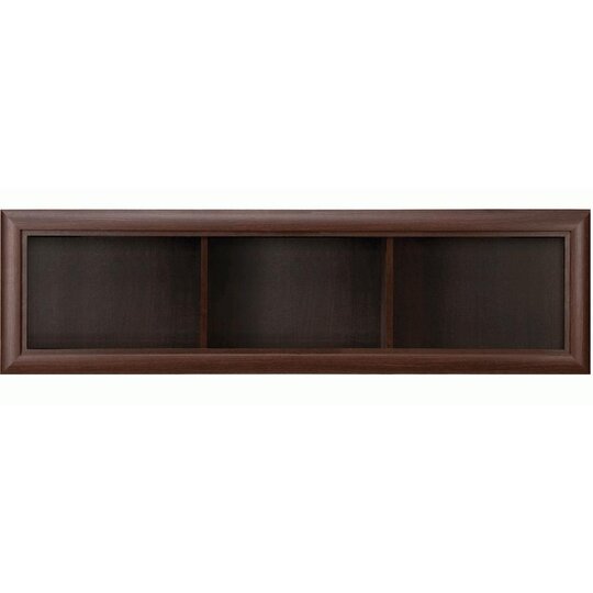 Особенности полки. Конструкция поделена на три сегмента. Застекленный фасад. Глубокий, насыщенный цвет, подчеркнутый  фактурой натурального дерева. Полка навешивается на фиксирующие кронштейны.