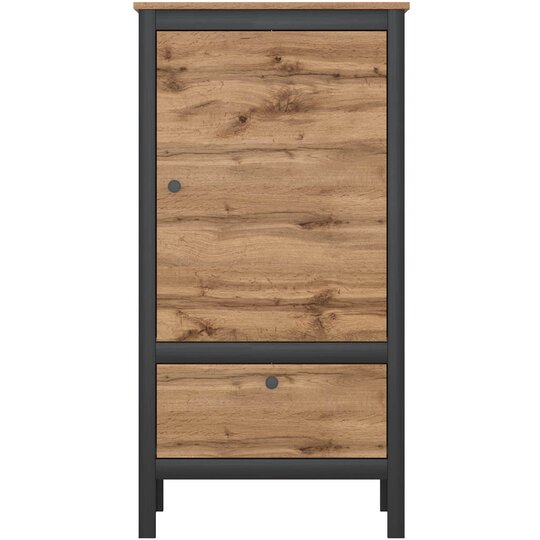 Тумба Loft BRW – это продуманное и организованное пространство для хранения. Компактная, но вместительная модель будет хорошо смотреться в спальне, гостиной, домашней столовой, прихожей или кабинете. Легкая и функциональная конструкция на высоких устойчивых ножках, включает в себя одно верхнее отделение с двумя полками за распашной дверью и