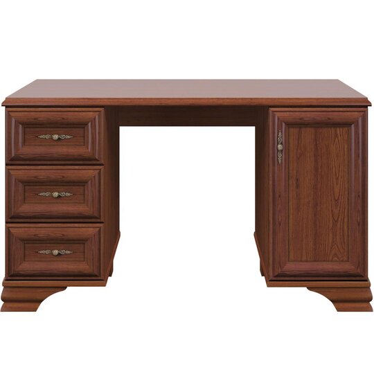 Туалетный стол Kentaki BRW – удобная, красивая и высокофункциональная мебель, позволяющая обустроить стильный и комфортный интерьер в классическом стиле. Прекрасное решение для хранения косметики. Три выдвижных ящика и большое отделение на распашной двери предоставляют достаточно места, где можно разместить все необходимое. Также стол можно использовать как традиционный письменный.