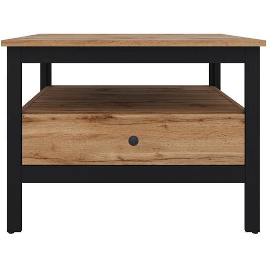 Журнальный стол Loft BRW - компактная и практичная модель, в которой Вы сможете разместить необходимые газеты и журналы. Легкая и функциональная конструкция на высоких устойчивых ножках, включает в себя один встроенный выдвижной ящик, оснащенный металлическими шариковыми направляющими: ход плавный и бесшумный. Ярко выраженная древесная текстура фасада украшена контрастными черными рейками, имитирующими металл и удобной металлической ручкой. Такой дизайн позволяет органично дополнить интерьер гостиной в скандинавском или лофтовом стилях. Столик Лофт составит элегантный ансамбль с другими изделиями из коллекции Лофт.