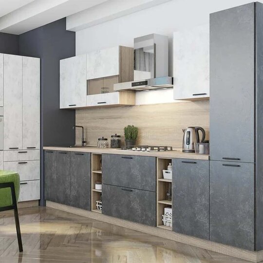 За дополнительную плату кухню можно укомплектовать различными аксессуарами: столешницей, цоколем, фартуком, плинтусом, мойкой, смесителем, посудосушителем, лотком для столовых приборов и т.д.