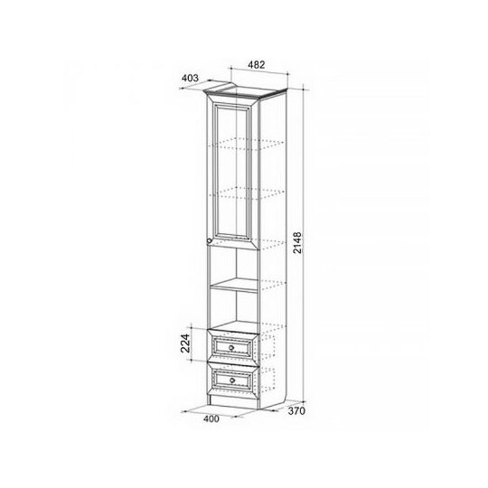 Ширина мм:480 Высота мм:2150 Глубина мм:400 Цвет:белый Материал корпуса:ЛДСП Материал фасадов:МДФ рамочный крашенный Гарантия:12 месяцев Бренд:Mebelson