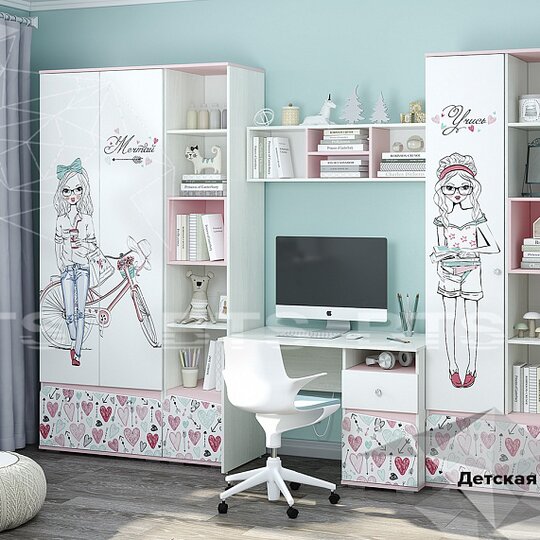 Нежные пудрово-розовые тона детской Малибу прекрасно сочетаются с классическим светлым декором корпусов и фасадов, на которые нанесен скетч-принт. "Малибу" - модульная система для детской комнаты, в которой проводит свое время девочка, верящая в себя, целеустремленная, постоянно познающая все новое и неизвестное, излучающая любовь и гармонию.