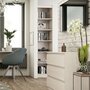За дополнительную оплату шкаф можно укомплектовать распашной створкой. Для этого в боковинах предусмотрена сверловка под планки петель. Если створка не устанавливается, присадка закрывается самоклеящимися заглушками в цвет корпуса.