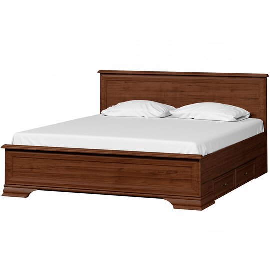 Стильная двуспальная кровать Kentaki BRW, выполненная в классическом стиле – одно из лучших решений для обустройства современного интерьера спальни. Она сделает отдых более комфортным, прослужив долгие годы. Благодаря наличию выдвижных ящиков для хранения белья, эта кровать идеально подходит для небольших спален.