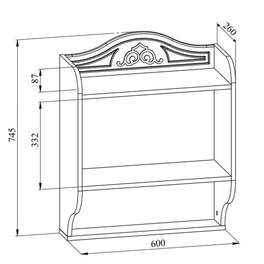 Полка навесная Ассоль АС-15 - это три открытых секции для размещения книг, фоторамок и сувениров. Модель сверху декорирована объемным рисунком, что придает ей утонченности и элегантности. Мебель изготовлена из качественной ламинированной ДСП 16 мм.