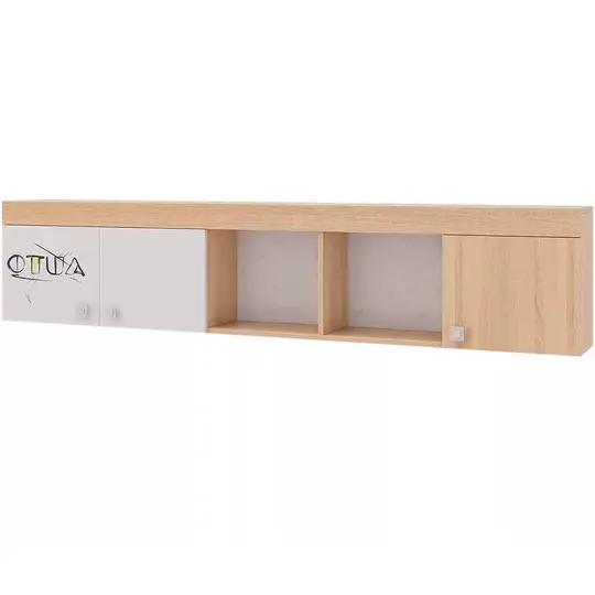 В закрытые шкафы и открытые ниши поместятся все учебники книги и сувениры. Эффектный принтерный рисунок на фасадах выдержан в общем стилистическом решении. Рисунок устойчив к истиранию и ультрафиолету. Можно повесить между шкафов над софой или использовать как самостоятельное изделие.