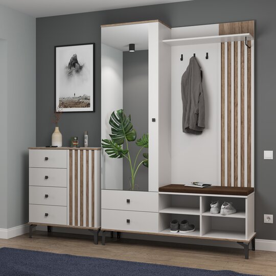 Ширина мм:1282 Высота мм:320 Глубина мм:176 Цвет:белый/дуб каньон Материал корпуса:ЛДСП Материал фасадов:ЛДСП Гарантия:12 месяцев Бренд:Олмеко