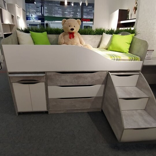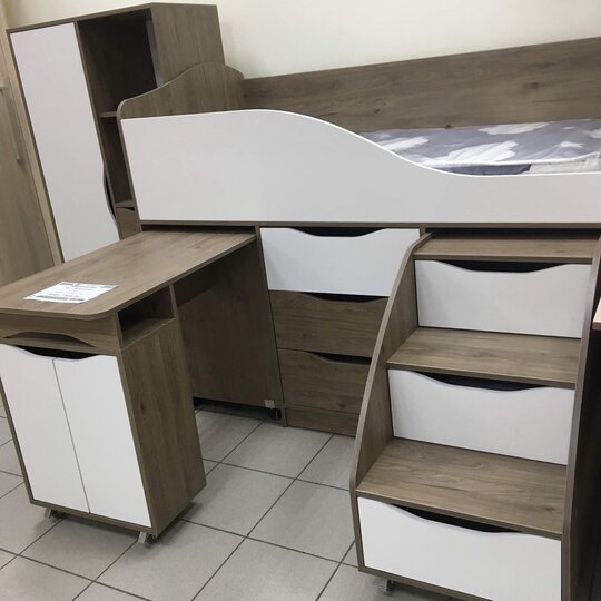 Коллекция мебели для детей и подростков Миндаль идеальна для создания порядка и уюта в комнате вашего ребенка. Эргономичность ящиков и полок, встроенных в выдвижной стол, лестницу и тумбу, позволит расположить мебель даже в небольшой комнате. Также в состав модулей входит вместительный шкаф, многофункциональная тумба и декоративные полки в виде облаков. Пусть в детской комнате всегда все будет на своих местах.