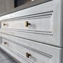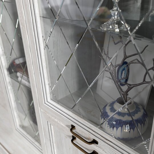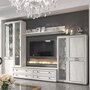 Элегантная модульная система для гостиной «Александрия» выполнена в стиле современной классики. Светлый цвет фасадов (сосна Санторини) оттеняет эксклюзивная рамка с бронзовой патиной, что только подчеркивает аристократичность этой мебели.