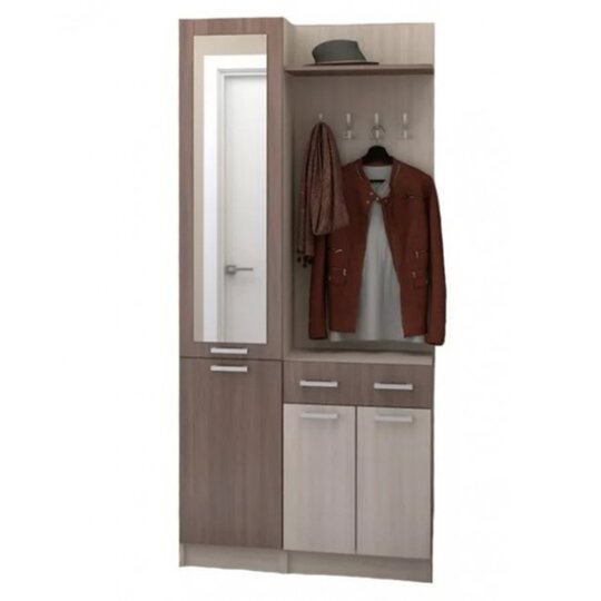 Прихожая Грация1 поможет выгодно меблировать помещение любого размера и стиля оформления. Система хранения состоит из множества полок, открытой вешалки, выдвижного ящика отделений за распашными дверцами. Комплект дополнен небольшим зеркалом. Модель поможет вам оформить пространство коридора любой площади и навести порядок в вещах и обуви.