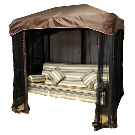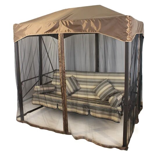 Качели-шатер 4-х местные Монреаль – удобная модель, предназначена для комфортного отдыха на садовом участке. Каркас выполнен из стальной трубы, диаметром 60 мм. Металлическое сиденье, из сварной сетки, имеет механизм наклона: звеньями цепи на требуемый угол наклона, с фиксацией в горизонтальном положении. Мягкие части матраса, толщиной 5 см, наполнены листовым поролоном, упругим и гипоаллергенным материалом. Крыша модели обтянута плотной тканью полиэстер с водоотталкивающей отделкой. В комплект входит: декоративные подушки, москитная сетка.