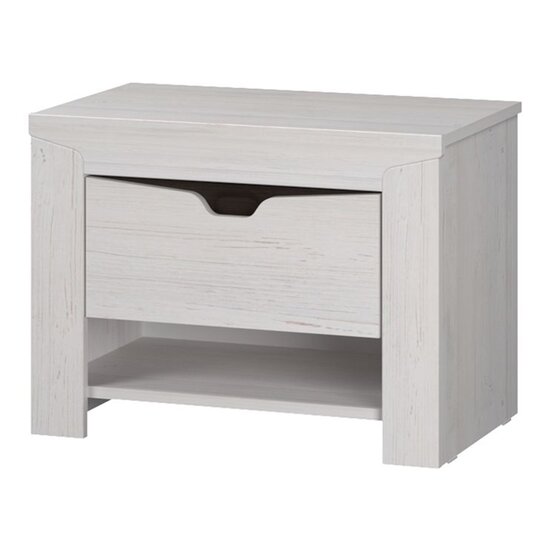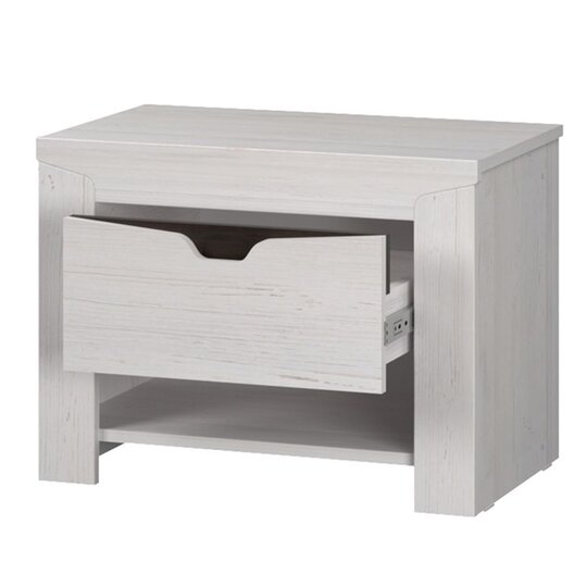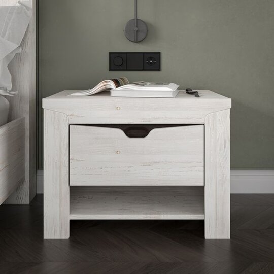 Прикроватная тумба Гарда — стильный предмет интерьера, который идеально дополнит пространство современной спальни и поможет сохранить множество мелочей в полном порядке. Система хранения представляет собой выдвижной ящик с вырезом на фасаде вместо ручки и открытую нишу для журналов. Тумба изготовлена из ЛДСП, на фасаде вставки МДФ.