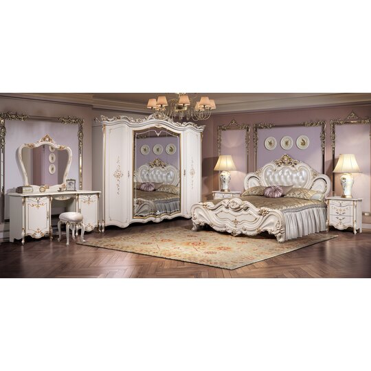 В комплект входит: Кровать 1800*2000, тумба прикроватная 2 шт., стол туалетный с зеркалом, шкаф или 5-дверный. Матрас в цену спальни не входит, менеджер подберет его под Ваши потребности. Посмотреть все матрасы можно здесь.