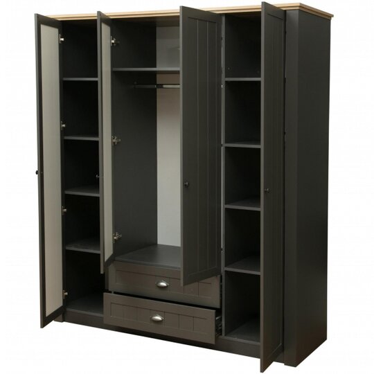 Ширина мм:1764 Высота мм:2090 Глубина мм:600 Цвет:диамант серый/дуб каньон Материал корпуса:ЛДСП Материал фасадов:МДФ Гарантия:24 месяца Бренд:Олмеко