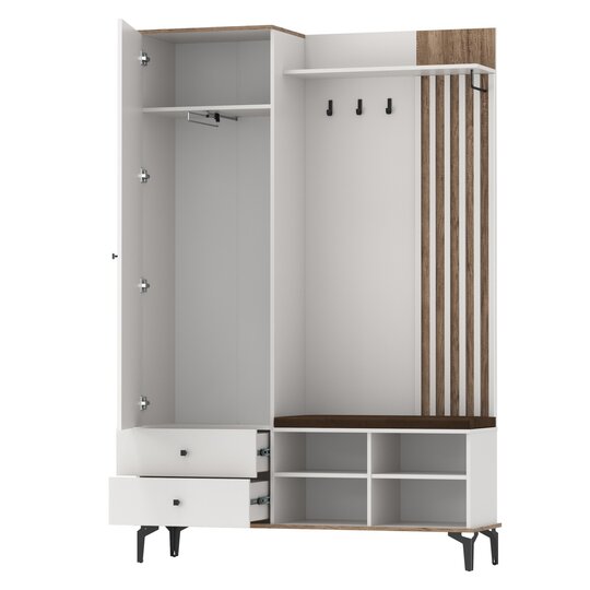 Ширина мм:1440 Высота мм:2170 Глубина мм:429 Цвет:белый/дуб каньон Материал корпуса:ЛДСП Материал фасадов:ЛДСП Гарантия:12 месяцев Бренд:Олмеко