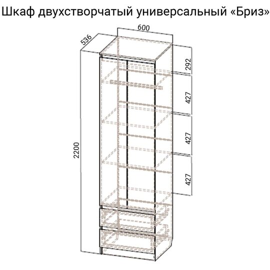 Габариты Ш*В*Г /мм/: 600*2200*536.