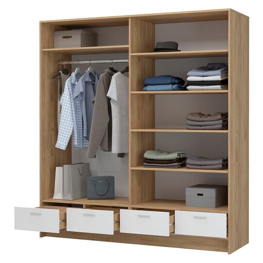 Ширина мм:1835 Высота мм:2000 Глубина мм:550 Цвет:дуб крафт золотой/белый шагрень Материал корпуса:ЛДСП Материал фасадов:ЛДСП Гарантия:12 месяцев Бренд:СтендМебель
