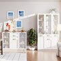 Элегантная модульная система для гостиной «Александрия» выполнена в стиле современной классики. Светлый цвет фасадов (сосна Санторини) оттеняет эксклюзивная рамка с бронзовой патиной, что только подчеркивает аристократичность этой мебели.