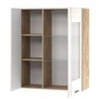 Двухстворчатый навесной шкаф Livorno НМ 011.29 обладает оригинальным дизайном. Один из фасадов декорирован вставкой из матового стекла, которая делает едва заметными те предметы, что находятся за ней. За дверцей с вставкой находится отдел с двумя стеклянными полками. В этой части модуля будет красиво смотреться посуда. В закрытом отделении с двумя полками можно хранить книги или документы.