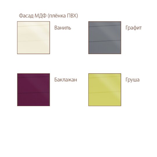 • Баклажан, Ваниль, Графит глянец и Груша глянец.