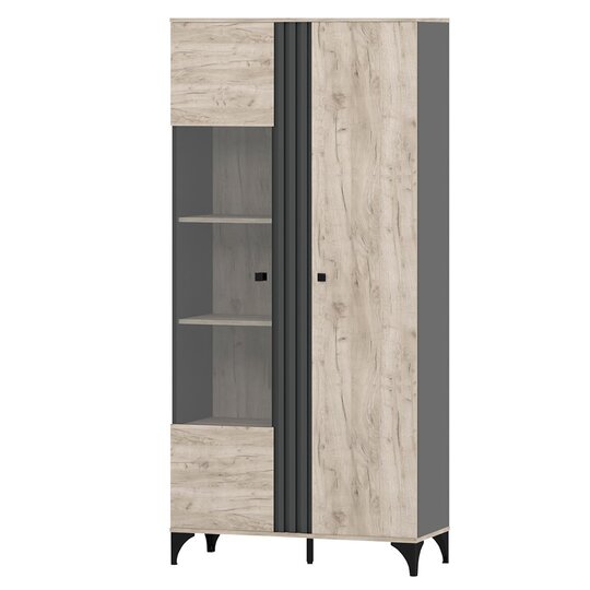 Комбинированный шкаф Отис выполнен в модной цветовой гамме дуба с контрастным антрацитом и отлично впишется в такие интерьеры, как лофт или скандинавский. Строгая геометрия реечных фасадов придает изделию сдержанности и минимализма.
