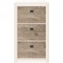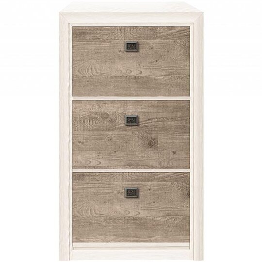 Особенности тумбы. Три отделения, в каждом из которых помещается несколько пар обуви. Каждое отделение закрывается откидной дверцей. Двери оснащены высококачественной и износостойкой фурнитурой из металла.