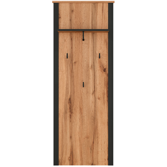 Вешалка Loft BRW станет практичным дополнением модульного комплекта прихожей или может использоваться самостоятельно в интерьере современной прихожей. Легкая и функциональня конструкция включает в себя вертикальный щит на который крепится вертикальная полка, составная вешалка и три пластиковых крючка. На полке удобно разместятся головные уборы, шарфы и другие аксессуары.