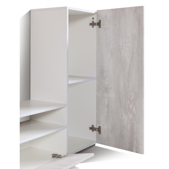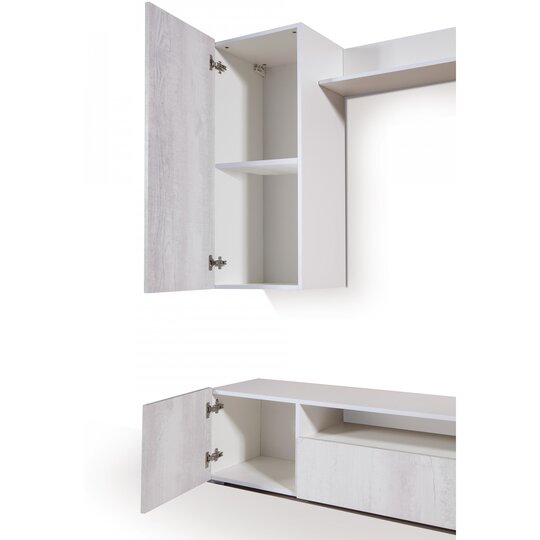 Ширина мм:2130 Высота мм:1700 Глубина мм:350 Цвет:белый/бетон пайн Материал корпуса:ЛДСП Материал фасадов:ЛДСП Гарантия:12 месяцев Бренд:Олмеко