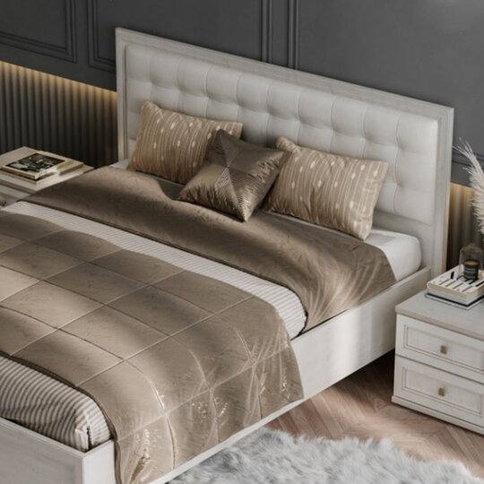 Элегантная модульная система для гостиной «Александрия» выполнена в стиле современной классики. Светлый цвет фасадов (сосна Санторини) оттеняет эксклюзивная рамка с бронзовой патиной, что только подчеркивает аристократичность этой мебели.