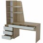 Комфортабельное рабочее место для учеников и работников офиса. Стол оборудован четырьмя функциональными ящиками, двумя открытыми полками и закрытым шкафом для хранения книг или учебников.