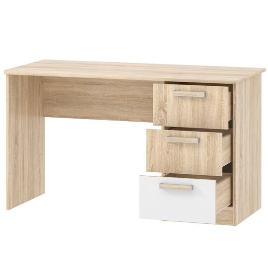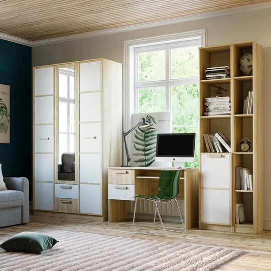 Стол пиьсменный Фанк поможет обустроить комфортный учебный уголок в детской. На рабочей поверхности модуля достаточно места для размещения не только письменных принадлежностей, но и ноутбука. Закруглённые углы столешницы делают эксплуатацию модуля безопасной для ребёнка. По окончании занятий ребёнок сможет убрать книги и тетради в выдвижные ящики для поддержания порядка на рабочем месте.