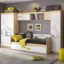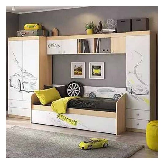 Открытые полки и закрытые ниши надстройки стола хорошо подходят для хранения учебников  и школьных принадлежностей. В 3-х выдвижных ящиков поместится все, что необходимо для учебы и творчества. Эффектный принтерный рисунок на фасадах выдержан в общем стилистическом решении. Рисунок устойчив к истиранию и ультрафиолету. Рекомендуем комплектовать: с остальными модулями детской Форсаж.