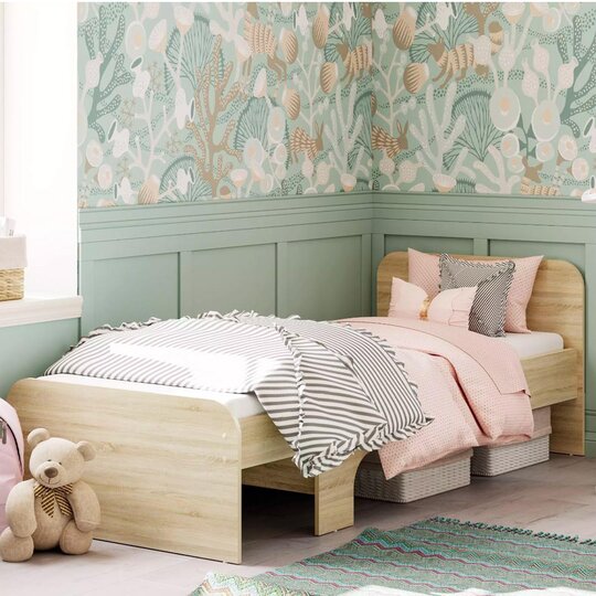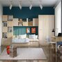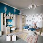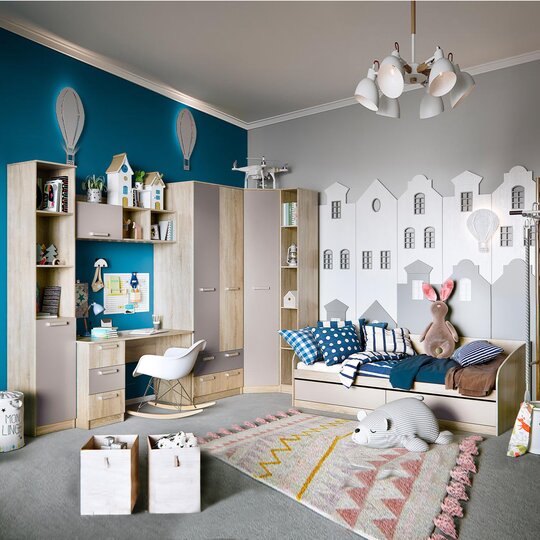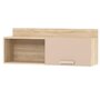 Полка 1100/1300 мм «Акварель» идеально впишется в рабочее место в детской комнате. Закрытая часть модуля может использоваться для хранения книг. Благодаря газлифтам, фасад поднимается высоко, открывая хороший обзор содержимого. Элементы декора будут хорошо видны в открытой части полки.