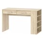 В конструкция стола предусмотрены боковые полочки, которые прекрасно выполняют роль мини-стеллажа, и где красиво и удобно разместятся учебники и любимые книжки. На рабочей поверхности модуля достаточно места для размещения не только письменных принадлежностей, но и ноутбука. По окончании занятий ребенок сможет убрать книги и тетради в выдвижные ящики для поддержания порядка на рабочем месте.