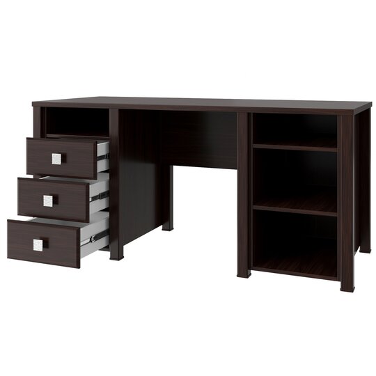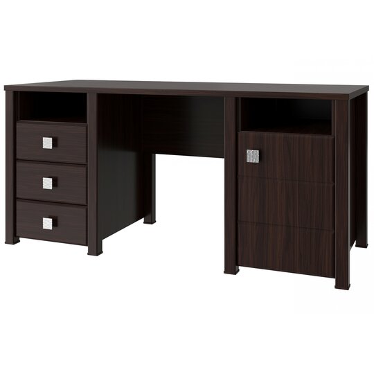 Письменный стол Изабель ИЗ-41К стильный и практичный вариант как для руководителя, так и для школьника. В этой модели присутствует всё необходимое для работы дома и офиса. Дополнив стол приставным сегментом ИЗ-42 можно получить удобное место для совещений. Стол оснащен двумя нишами для документов, три вместительных ящика и закрытое отделение с двумя полками. Столешница выполнена из ЛДСП 25 мм, дно ящиков двп 3 мм. Фурнитура: металлизированные квадратные ручки, телескопические направляющие полного выдвижения, петли с доводчиками.