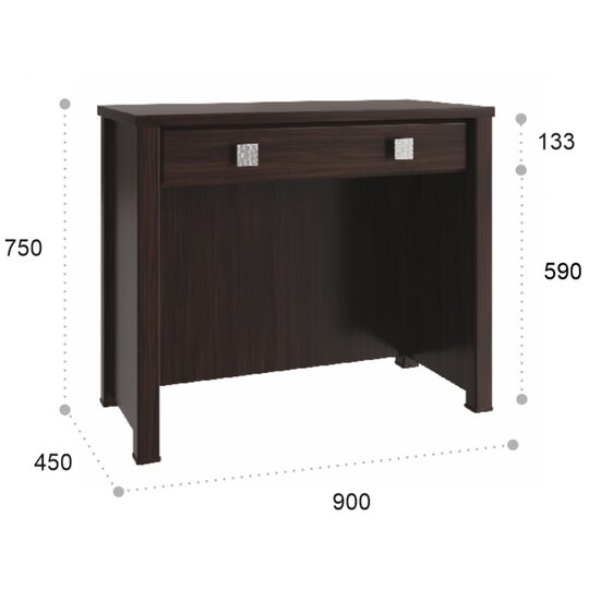 Стол туалетный Изабель ИЗ-40К станет прекрасным украшением вашей комнаты. Кроме столешницы есть выдвижной ящик разделенный на два отделения для косметики и разных аксессуаров. Столешница выполнена из ЛДСП 25 мм, дно ящика ДВП 3 мм, опоры профиль МДФ. Задняя стенка выполнена из ЛДСП в цвет корпуса. Расстояние от пола до ящика 588 мм. Фурнитура: металлизированные квадратные ручки, телескопические направляющие полного выдвижения. Важная информация. Мебель доставляется в разобранном виде, в упаковках.