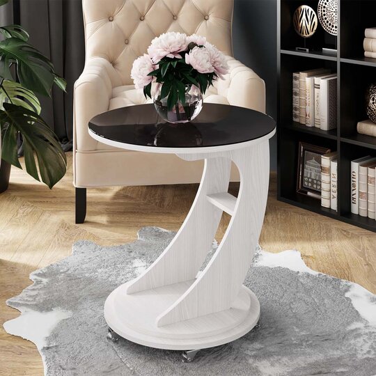 Круглый журнальный стол №9  в первую очередь выделяется своим дизайном, при этом он очень функциональный.