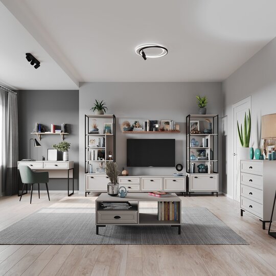 Комплект мебели Антея отлично впишется в интерьер вашей спальни, гостиной. Мебель выполнена в стильном дизайне. Журнальный стол имеет ящик, а стеллаж вместительные полки. Набор Мебели Антея гармонично впишется практически в любой современный интерьер и будет радовать гостей и домочадцев своим удобством. Современный стиль очень многогранен и позволяет смело экспериментировать с интерьером.