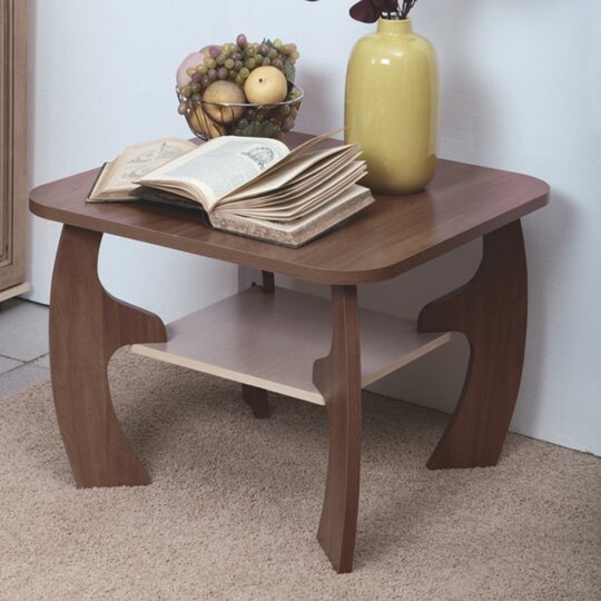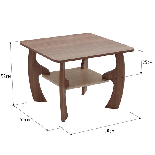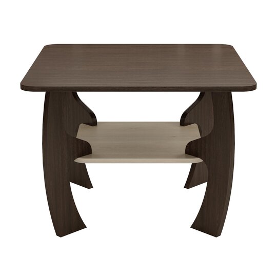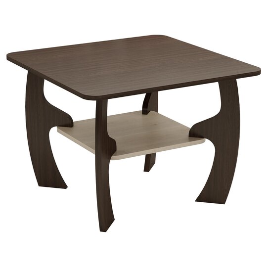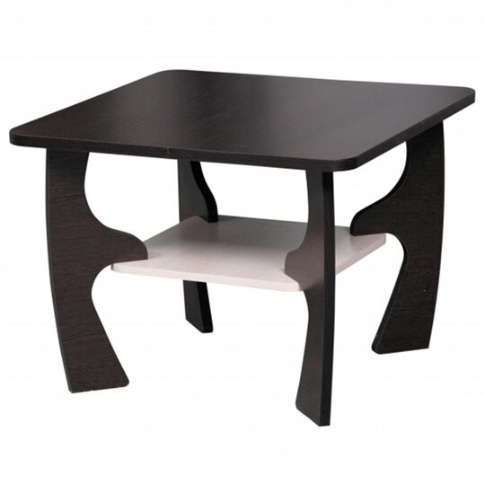 Маджеста-5 - красивый журнальный столик, изготовленный с применением современных материалов. Благодаря удачному сочетанию цветовых решений и необычной форме деталей, изделие смотрится стильно и современно. Помимо столешницы и ножек в комплектацию входит прочная полка, имеющая достаточно места для размещения печатной продукции. Очень компактный журнальный столик Маджеста-5, способный дополнить интерьер практически любой гостиной. Его квадратная столешница со скруглёнными углами хорошо гармонирует с небольшой полочкой и плоскими фигурными ножками.