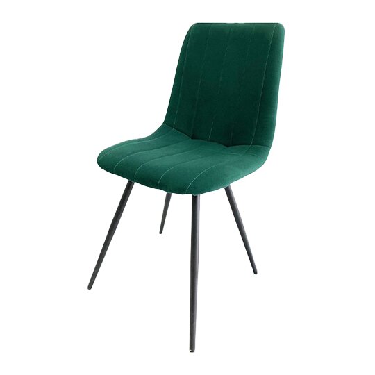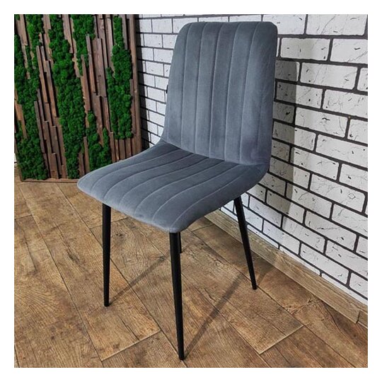 Классический обеденный стул без подлокотников на металлических ножках плоской формы. Мягкая обивка выполнена из велюра - прочного, износостойкого и приятного на ощупь материала. Внутренняя сторона сиденья и спинки украшена геометричной строчкой.